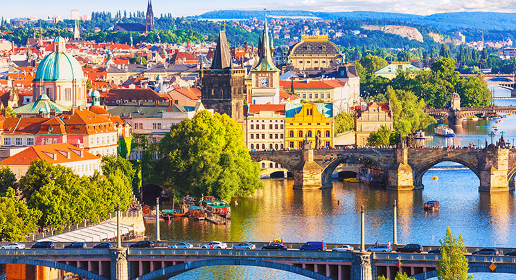 mang kiểu dáng kiến trúc truyền thống tuyệt đẹp. Sau đó du khách sẽ được đi dạo qua cầu Charles quyến rũ bắc ngang qua dòng sông Vltava, dạo qua nhưng con phố nhỏ để đến quảng trường phố cổ (City Hall), nơi du khách nhìn thấy Tòa thị chính và nhiều công trình nổi tiếng khác của Prague như là chiếc Đồng hồ Thiên văn học (Astronomical Clock) với hơn trăm năm lịch sử. Sau bữa trưa tại quảng trường, du khách sẽ lên đường khởi hành đi Bratislava để nghỉ đêm.