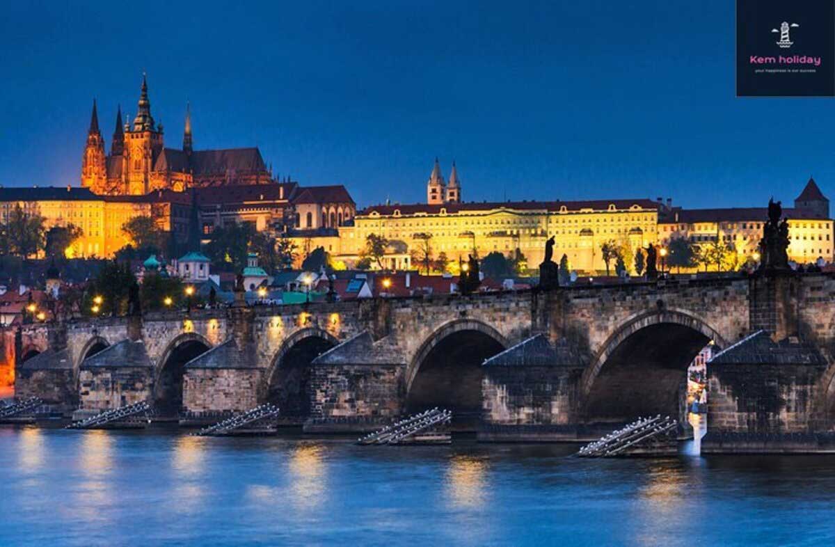 tham quan Lâu đài cổ Prague – một công trình kiến trúc lịch sử, là nơi ở của các vị vua của Bohemia (https://vi.wikipedia.org/wiki/Bohemia) vào thế kỉ thứ 9 và ngày nay được dùng làm nơi ở của các đời Tổng Thống. Chuyến đi sẽ tiếp tục dẫn du khách đến thăm một nhà thờ mang lối kiến trúc Gothic St. Vitus Cathedral, Cung điện Hoàng gia (Old Royal Palace), nhà thờ St. George’s Basilica và Con đường Vàng Golden Lane – là một đường phố cổ với những ngôi nhà